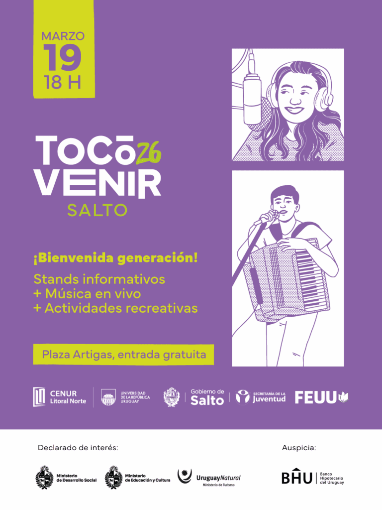 Un nuevo año que la sede Salto del Cenur Litoral Norte de la Universidad de la República, da la bienvenida a la generación de ingreso con el evento «Tocó Venir» 2026. Actividad que se multiplica en diferentes puntos del país.