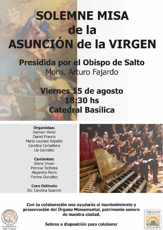 15 agosto, 2025 in Sin categoría SOLEMNE MISA de la ASUNCIÓN de la VIRGEN Puesta en servicio del órgano monumental.